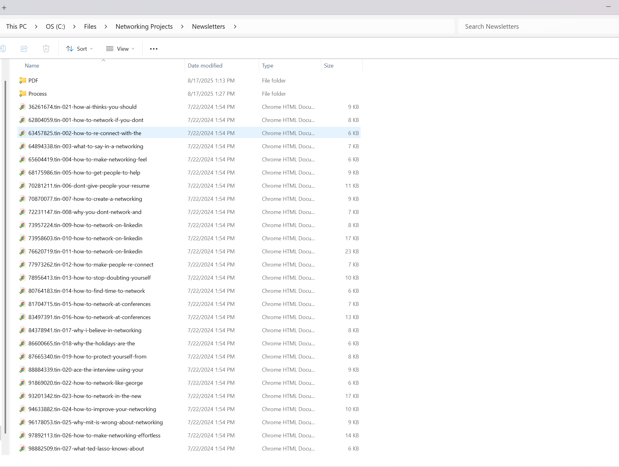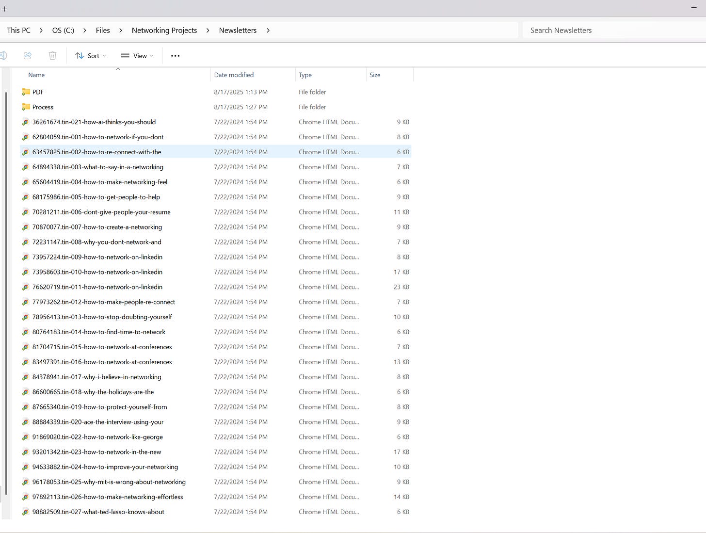 Now I had all 150+ newsletters as individual HTML files, ready for the next step.