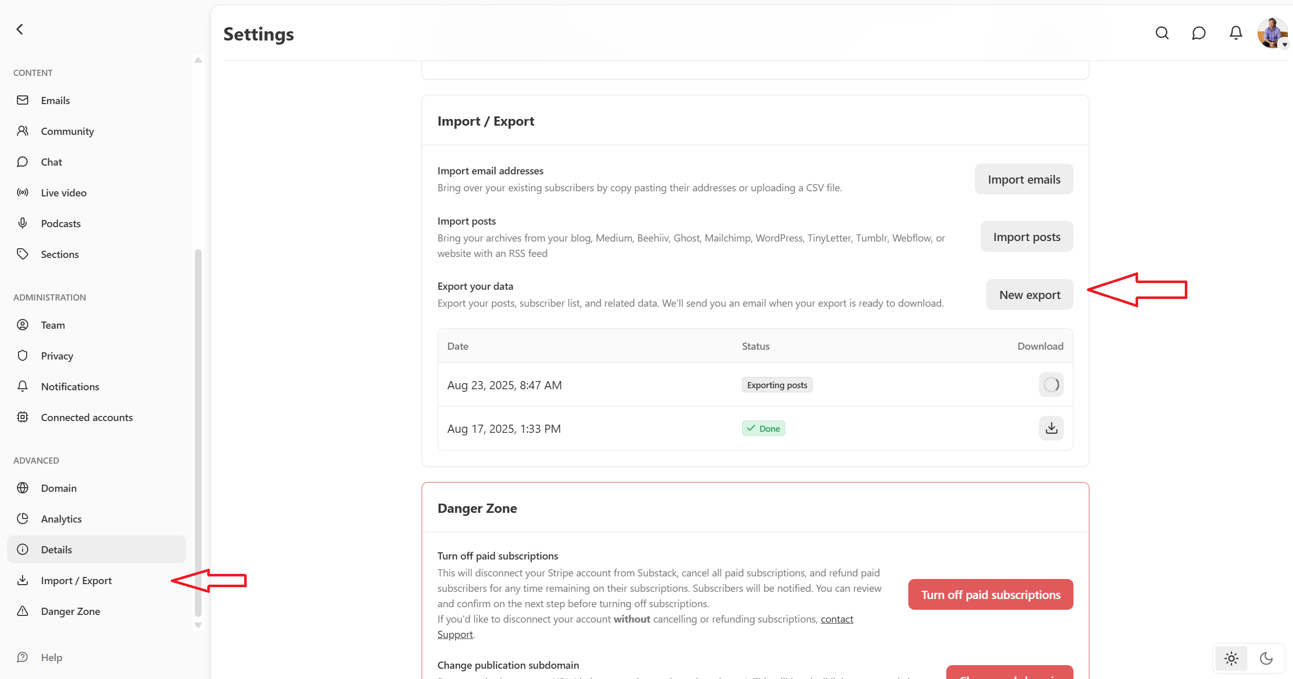 Exporting from Substack